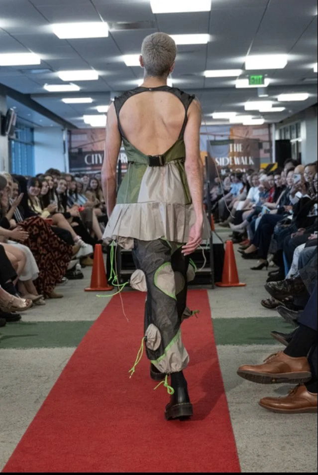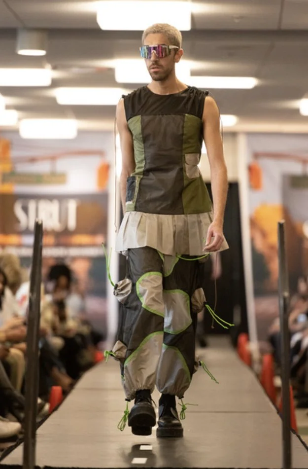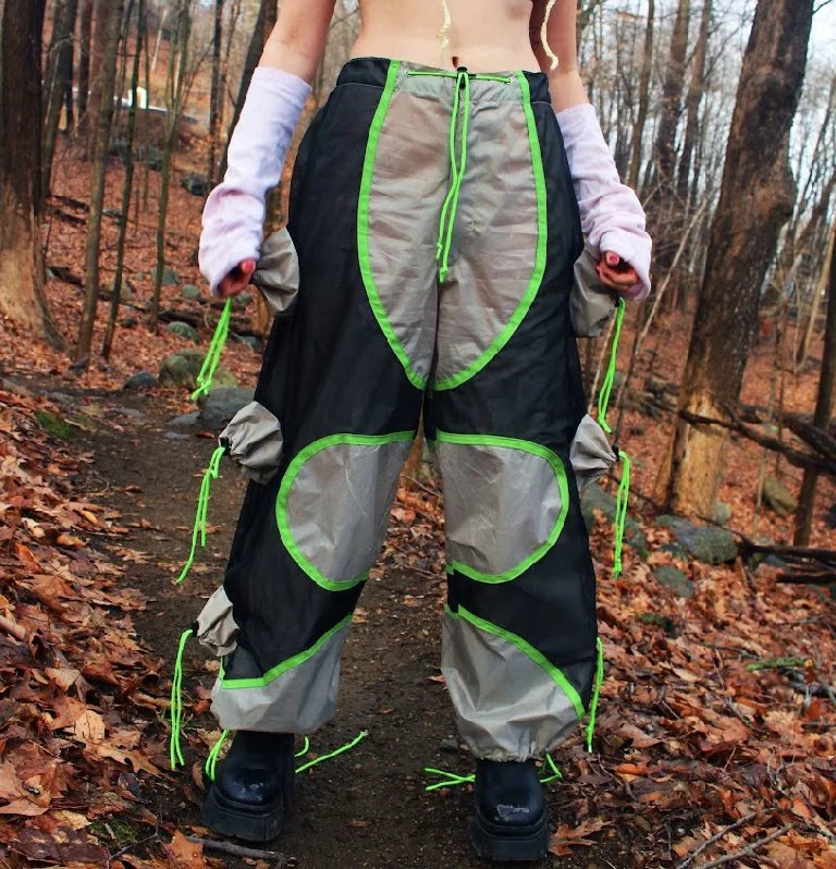 After the project was selected by the Fashion Scholarship Fund, I was inspired to bring the collection to life through patternmaking and construction. I created The Stash Wind Pants and The Windbreaker Shorts using reclaimed tent fabrics, resulting in lightweight garments that highlight versatility and sustainability. Continuing this creative momentum, I produced two additional pieces from tent materials—a dress and a vest—further expanding the collection.